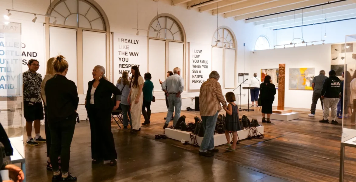 “Tonight, we celebrate our artists and the impactful work that they contribute to the cultural landscape,” said president and CEO of NACF Shyla Spicer, citizen of Yakama Nation, as she looked out at the crowd gathered to celebrate the exhibition opening. “We thank you for your dedication to your practices and the bravery you show in showing your work to the world. You’re unflinching in your resolve to make the world more beautiful, equitable and sustainable.”
